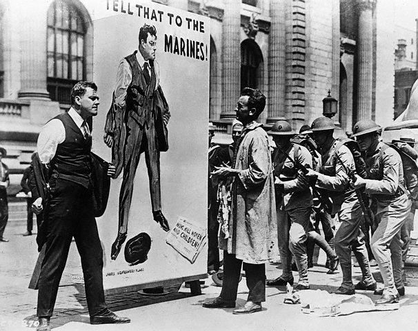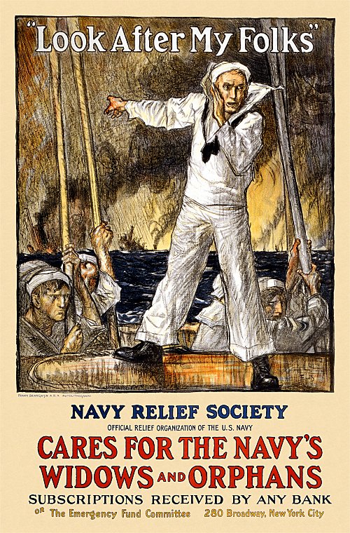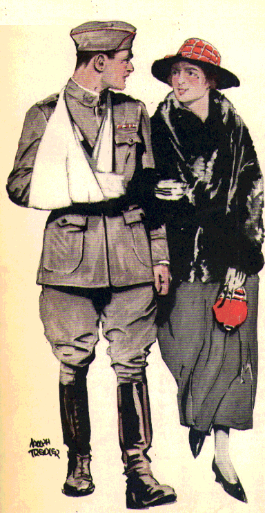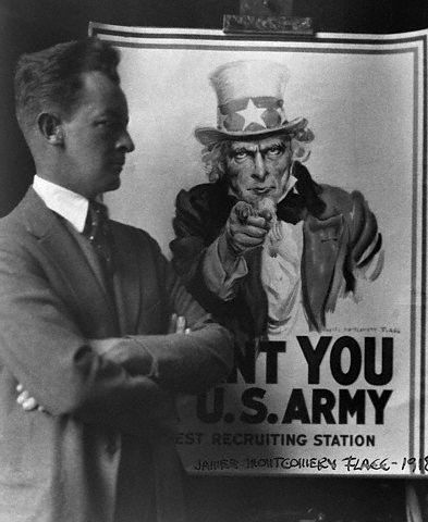 If nobody printed more WWI posters than Joseph Palmer Knapp, no one drew more of them than James Montgomery Flagg. His iconic I WANT YOU Uncle Sam is probably the most enduring image of the era. Sam's face is Flagg's btw. Flagg who was a real "first nighter" was a close personal friend of my grandfather Jack "the Ol' Marine" Spooner.