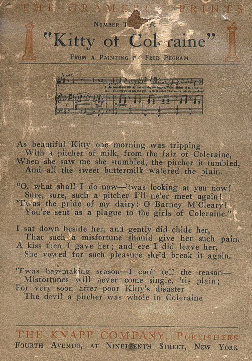 I've had this one for several years . It is circa 1910-20 was sold by Knapp Co. pre framed and ready to hang. It still has the label on the back which is amazing.