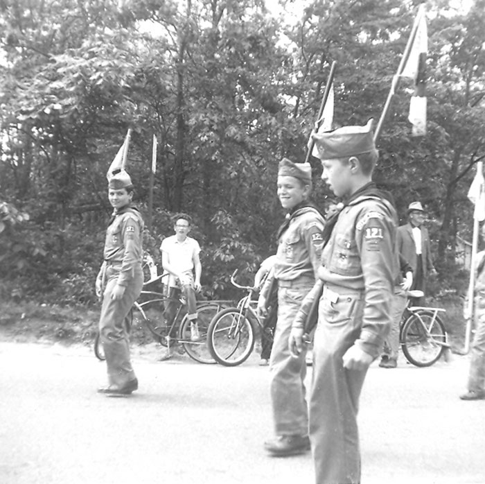 Marching somewhere along Neighborhood Road are Al Fahie , Larry Collins. and possibly Donald Hulse foreground.Watching from his bike is none other than Guido Michelini a 7th grade classmate of mine. It was probably around the time that Larry took the photo in the snow that Guido & I were getting into trouble in a kayak on Knapp's Secret Pond