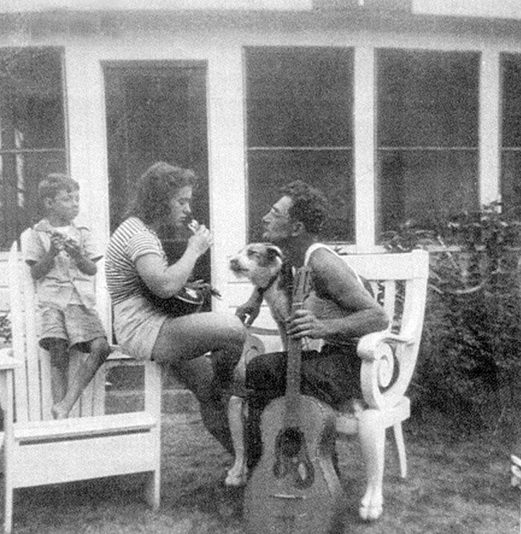 My first introduction to live music was lawn concerts like these. This one is taking place in 1947 on Wavecrest Dr. in Mastic Beach. (The year I was born and three years before we moved out there) Seeming extremely interested in what mandolinist Patty Fischer is about to chow down on are guitarist Joe Patera and his dog Tango. Little Billy Little is probably humming a bar of God Bless The Child Who's Got His Own, but he will be singin' a different tune if Patty stands up!