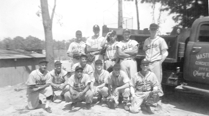 The Mastic Indians That Is. I'm not sure if they are at the Legion Field in Mastic Beach or Titmus Field in Mastic here. These guys played real honest hardball. That's Richie Larsen squatting in front of the tree and Len Clune squatting dead center. Any other ID's are more than welcome. Notice one guy has a Moriches Jersey.