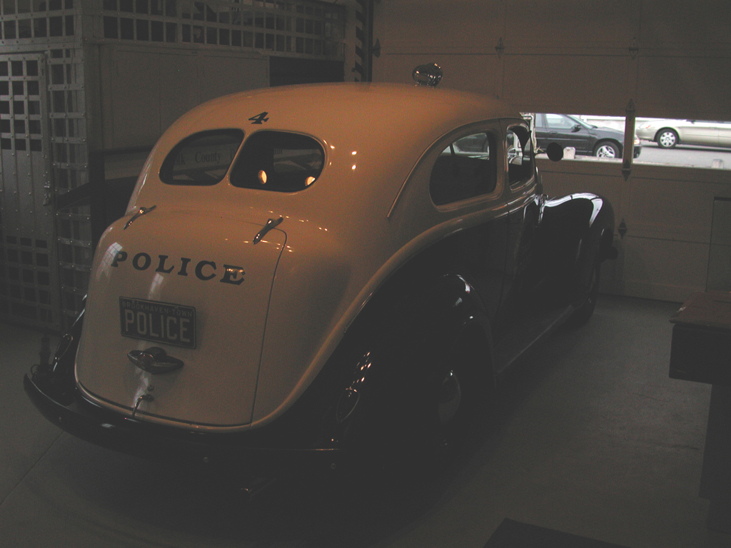 On Tuesday I got to spend most of the day with retired race driver Marty "That's History" Himes who I first met in 1994 when I started doing research for my Long Island racing book " Long Ride On A Short TracK" We have been fast friends ever since and I never fail to visit with him someplace or go to his museum in Bay Shore when I'm back on the Island. We had no specific plans but when Marty came by in his '56 Ford Victoria, he asked me if I wanted to visit the Suffolk County Police museum in Yaphank, a place he now works at part time. "Sure thing", I said . I had just recently added in a section to the website on The Brookhaven Town Police when I interviewed retired officer William Baessler and his wife Gloria who were long time Mastic Beach pioneers. ..... and so off we went. Yaphank settled 1726, has always has held a fascination for me ever since I first went swimming in the lake there around 1952. We used to drive to the lake in our Model A Ford coupe, which was an adventure itself. And of course some of you website readers know there is also a "Knapp Connection" to Yaphank. Some of the museum is located at the county police headquarters and part of it is in the old restored Yaphank Garage. It was to the garage of course where we first headed.