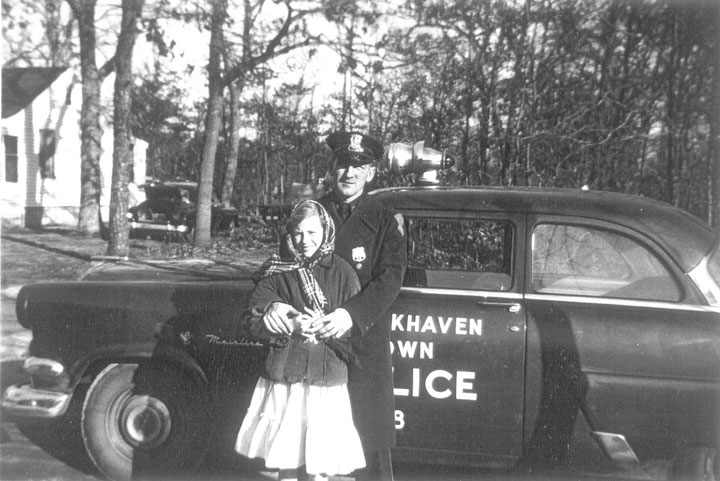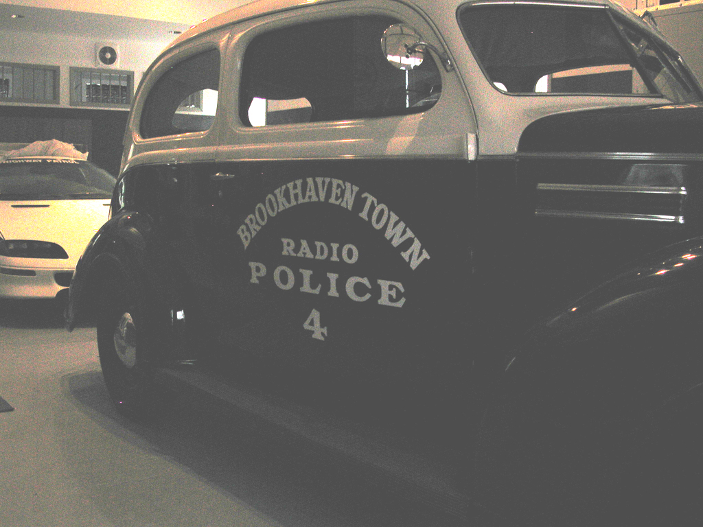 Marty Himes who is the Fleet Manager for the Suffolk County Police Historical Society and I were met inside by Thom Smith & Ed Johntry, two veteran officers of the SCPD each with well over 30 years "on the job" and who are respectively the Director & Historian of The Suffolk Police Museum. When Marty told them about my history project, we all sat down and had ourselves a very nice chat that lasted well into the afternoon. Lots of good stories got passed around the table. When I mentioned that I had some material about the Brookhaven Town Police and even the Brookhaven Town Junior Police on my web site and that I had recently interviewed Bill Baessler, Thom pointed me in the direction of one of their displays and I saw this photo straight away. Naturally I had to have a copy of it!