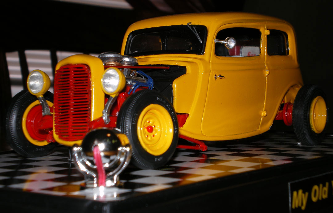 Horizontal Grille Bars Are Made From Fishing Line Winsheild Wiper From Wire Mirror is drilled into the body as are the door handles. Coil Springs Are Real ! Headlight Brackets are fabricated Caddy Engine is fully detailed with Wiring, Fuel Lines, Oil Breathers, and correct exhaust manifolds. Air Cleaners on the two four barrels are fabricated.