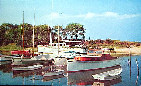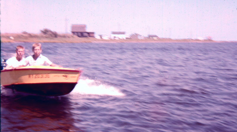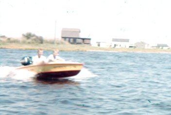 It seemed all our friends had boats. The Schulz's had a rowboat but they never seemed to use it till their Dad bought a motor, The Denning's had a 14 foot runabout with a 15 hp Evinrude, the Yodice's a Penn Yann 16 footer with a 30 horse Johnson. But we never got to go out in them. The Denning's were a large Irish family with lots of uncles who used it for fishing. The Yodices a very large Italian family , most of the time even the kids from those family's didn't get to ride. My sister was dating a guy named Dennis in high school whose father had a small rowboat in Pattersquash creek with a 7and 1/2 horse Elgin. We went out in that a few times, but it wouldn't hold all of us. Then they bought a larger inboard skiff but it was moored over in Center Moriches and we only went out in that once or twice. I do remember catching the biggest fluke of the day on a drop line off it.