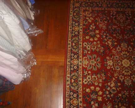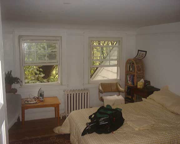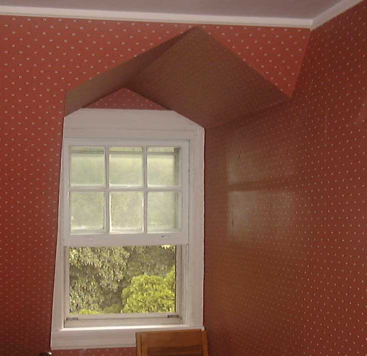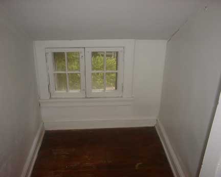 | In the original house two very tiny childs bedrooms were made into one walk in closet, the floor shows where the wall once divided it. On the right looking out one of the 5 distinctive "eyebrow" windows | ||||||||||||