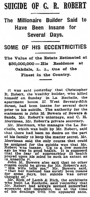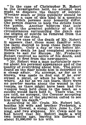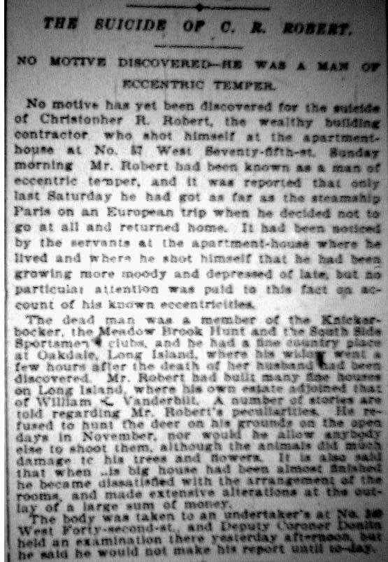 and born to Christopher R. Robert, a millionaire importer in 1835.