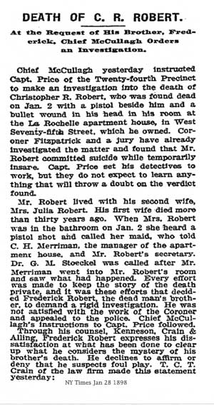 along. On Jan. 2, 1898, she told police she found Robert shot