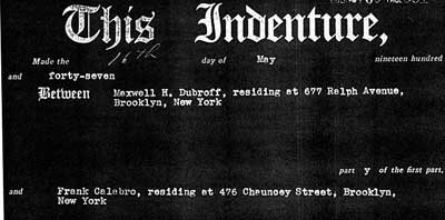 Well it's highly likely that Max Dubroff was a speculator because he didn't have the property for more than 9 months when he sold it to Doctor Frank Calabro,for $45,000.00. Besides the 12 acre Lawson Estate and buildings there was some additional land in this deal in section 3 east side of Pattersquash Creek and 4 that came to around 45 lots. Lots then were selling for $90.00 so it comes to roughly $4,150 but still a nice $5000 profit which was about twice the years average salary then. Doc may of known Dubroff prior to this as they literally lived around the corner from each other in Brooklyn. (Ralph & Chauncey interesect with each other) I make that point because of an "incident" that happened in this deal that is open to speculation .