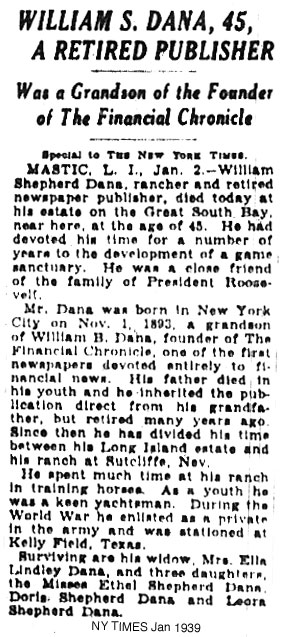 Because he was the last male heir to the Dana "Moss Lots" estate and a close pal of Dodi Knapp and Willis Penney and that much of what he did and didn't do affected the course of events in Mastic, my study of the Dana family seems to focus on William Dana Shepherd 1892-1939, who became William Shepherd Dana when his grandpa Buck adopted him in 1908 under the condition he reverse his name.