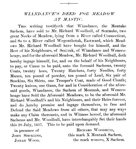 (Wyandanch) the Mentake Sachem (leader of the Montauk Tribe) gives
