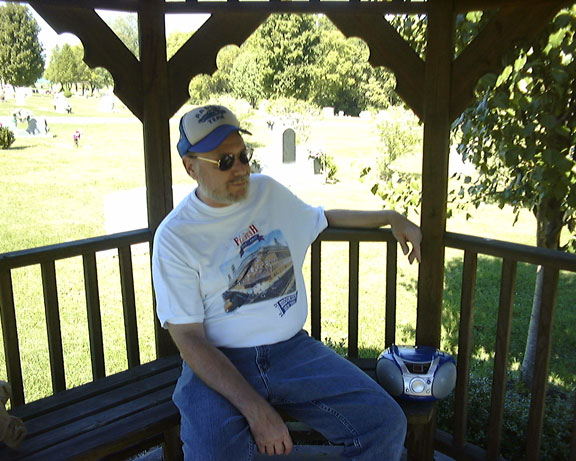 Instead of Song For Roy which is somewhat chilling if you knew Roy and awfully sad, I brought Slap City a song about the upright bass and the music it made behind all the rock a billy's in the '50's. Roy and I recorded it at those early Elvis sessions in 1988. Roy is in a mausoleum building and I got to admit had someone else entered the building, I might of felt a little self concious (might of got run off too) but it played all the way through twice and I just thought a whole lot about him while it did.