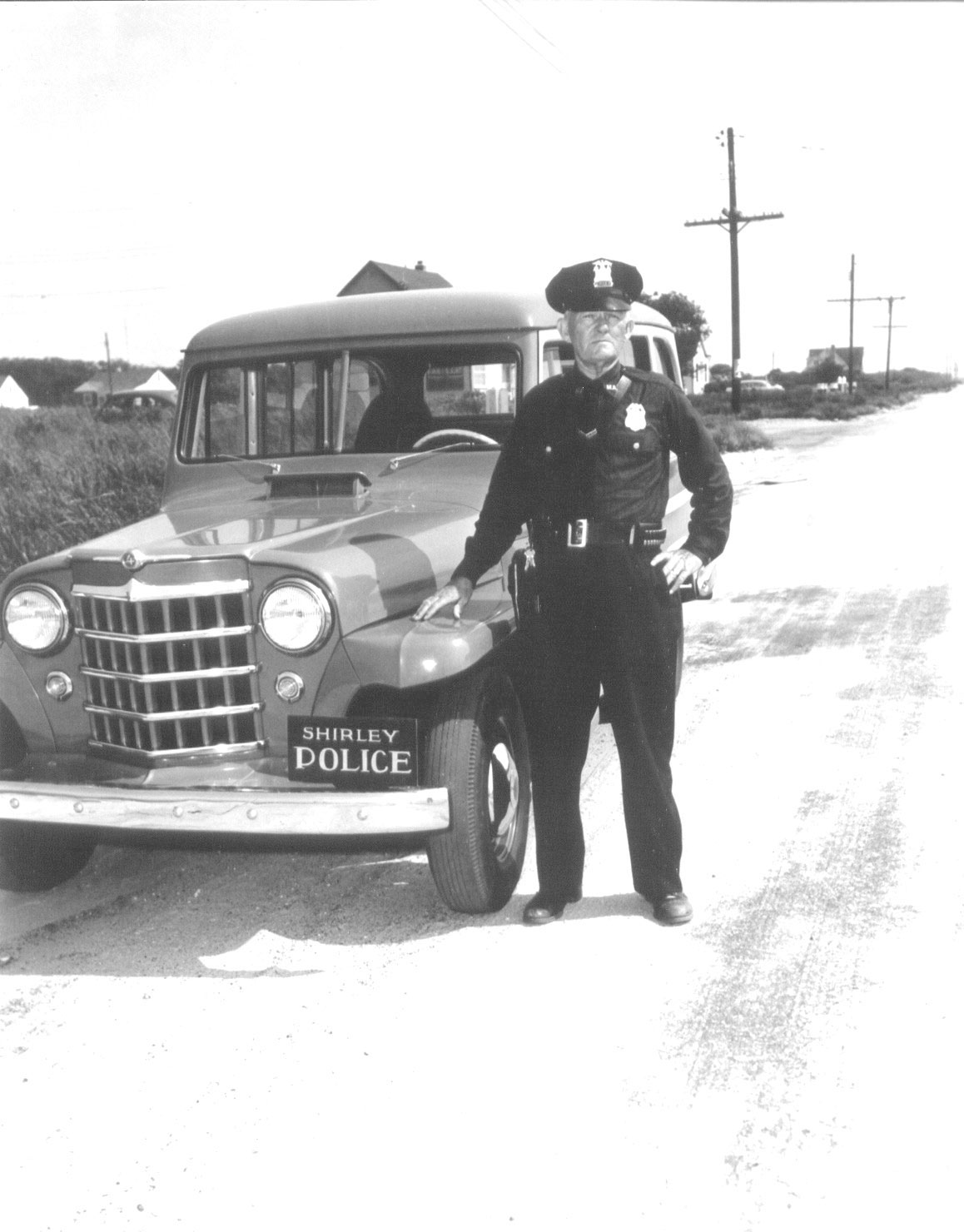 In the New West, west of Mastic Beach that is, at Shirley, LI in the early 1950's you had "Fearless Fred" . Fred Bucholz was a one man private police force hired by Walter T. Shirley to nip things in the bud. If Fred needed backup, he would call for the boys of Brookhaven Town P. D. at the 4th Precinct , I don't know if Fred even had a radio in his Jeep? I don't see an antenna . I know Walter T. had a radio telephone in his his Lincoln and a siren too, but he rarely patroled the streets of his town . He used it to go on police calls from his home and office NYC for grins.