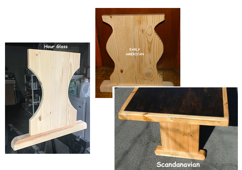 OPTIONAL STYLES FOR TRESTLE LEGS (note: The Hourglass allows benches to store away completely under the table