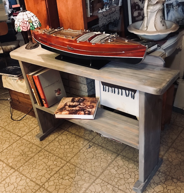 The table above was co-ordinated to blend with a 40 year old maple china cabinet.