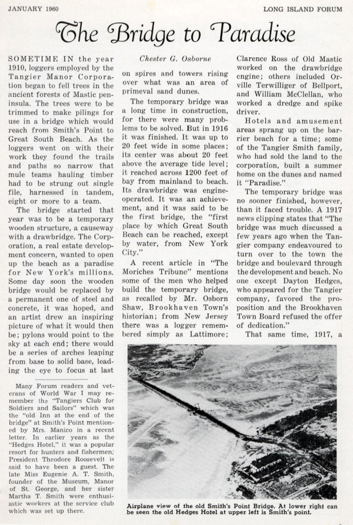 From The Pages Of The Long Island Forum January 1960