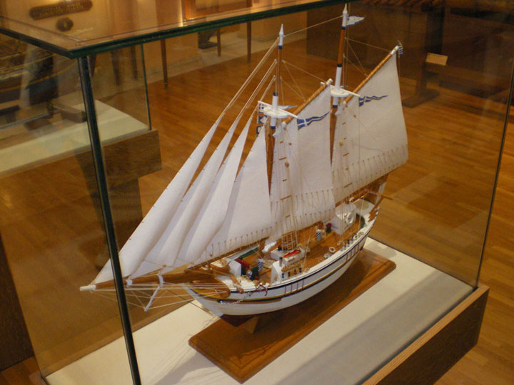 In the Crete Naval Museum (Red building) across from the lighthouse, Anne was quite suprised to see three of her uncle George Orologas' ship models