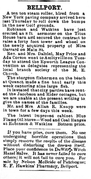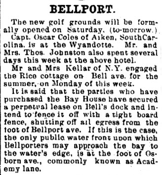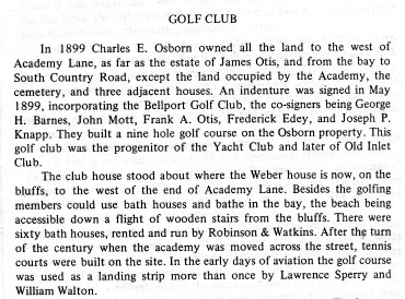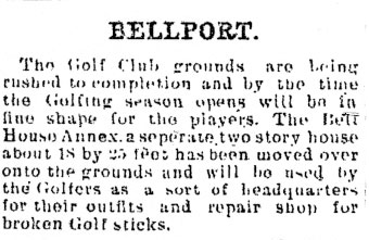 In 1899 J. P.'s name turns up in Bellport, due to his other passion GOLF. Here is an excerpt from a booklet on the village I discovered in the Local history room of the Patchogue Medford Library with the help of librarian Mark Rothberg.