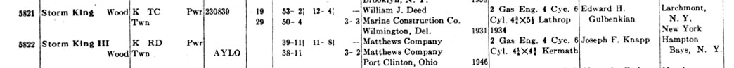 Once again thanks to the Mystic Seaport Museum and the efforts of their librarian, Wendy Schnur, I was able to come up with more info on the original Storm King including the subsequent owners as late as 1979 ! and the existence of Dodi's Storm King Too and Storm King III .