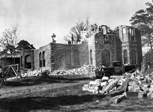 That may well be Mrs. Katherine Floyd Dana standing in front of her home "Grey Cliffs" located in Englewood, NJ. The photo is circa 1870-80. This was the William B. Dana's winter residence and permanent home before they built Moss Lots in Mastic in 1881. In 1935 Grey Cliffs would suffer a similar fate that would befall Moss Lots 35 some years later. Both were destroyed, the New Jersey one by" PROGRESS" for Palisades Parkway and Mastic by "ARSON"for ????