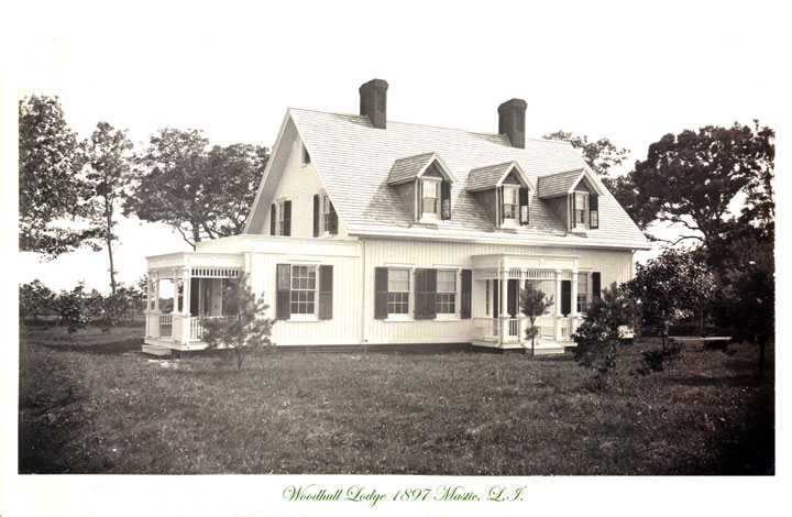 The Lawrence family roots go back to the colonial days of Mastik Neck. The town of Lawrence, Long Island is named after them also. Their family tree in America is long, fairly complicated and well intermarried with the Woodhulls. Hannah along with her cousin Frank M. Lawrence (1862-1920) who was born at Mastic, obtained the Charles W. Lawrence estate at auction in the 1880's. There were two homes and many farm buildings included. Hannah took the home known as the Woodhull Lodge built about 1850 by Charles Jefferey Smith and moved it approx a half mile west to the edge of Frank's property to where it sits today on Locust Drive. It has been in the possesion of the Muse Family since 1948