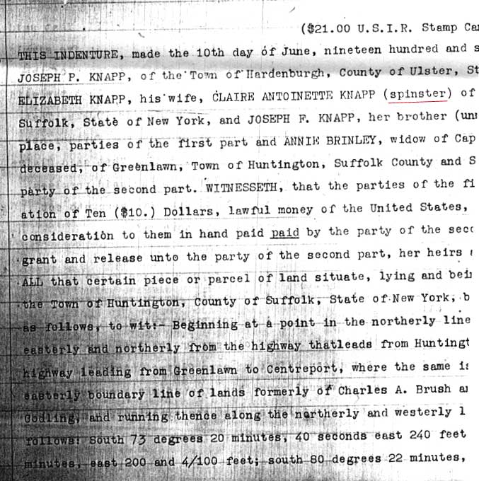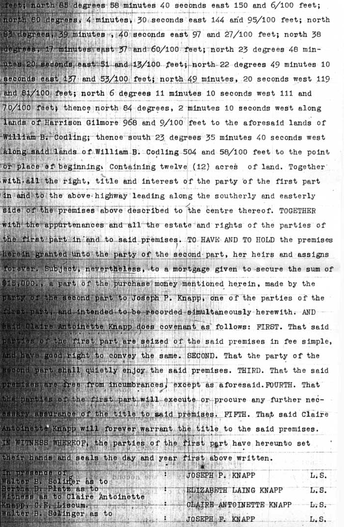Joseph F. Knapp "her unmarried brother " Sell 12 Acres