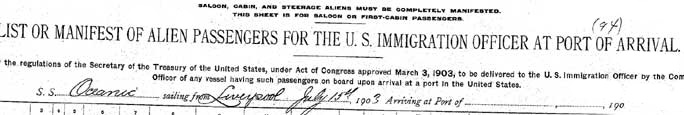 passenger manifest with his mother and sister in 1908 nor is he