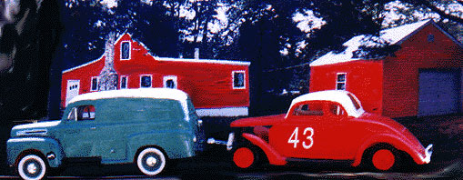 I remember going to their house a couple of times in 1958 and having a lot of fun. They had a finished basement, which was a very cool thing to have in the 50's. I think I first heard the record Jennie Lee by Jan and Arnie (forerunner of Jan & Dean ) in the Messinetti basement. Their cousin Vic lived right on the block and he dropped in one day. We all went up to their station, because they had a car they could drive around in the field behind it. It wasn't just any car either, it was a '36 Ford sedan, with the hood side panels removed. With me being a huge stock car racing nut, this sedan looked a whole lot like the cars I had been watching at Riverhead Raceway for a year or so. It didn't have a muffler, so it not only looked like a stock car, it sounded like one. The 5 of us all piled in it and Gary or Johnny took us around the dirt track they had plowed with it in the big field the summer carnivals used to set up in. We really bounced around as I think the shocks were shot. It had mechanical brakes, which were basically like not having brakes, except that they grabbed and that jolted us around even more. I don't think we took too many laps before Pat appeared and waved us in. I just remember really wanting to have something like it and would always ask Victor about it back in school. One day he told me his Uncle Pat sent it off to the junkyard because a guy who lived behind the station on Victoria Drive complained about it interfering with his TV reception. Even though it wasn't mine, I hated to see that car go. It would be four more years before I had a car like it, that I built a stock car out of.