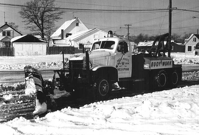 As I think back on it, I remember associating Pat a whole lot with the wrecker. Whenever I'd see it out on the road, he seemed to be the one driving it. One day around 1961, I was walking my dog Boots around Swamp Road. Swamp Road was really the south end of McKinley Drive, that curved around and became Forest Road. As it did, it passed through a real swampy wooded area where no houses were. Swamp road was always the unofficial name for it. Just as we got to the curve, I saw Willy Conklin in his Studebaker coming towards me. Willy, a friend of Butchie's, was in the passenger seat and it looked like no one was behind the wheel! I thought uh oh Willie's up to some kind of trick and I stepped off the road into the swamp. It was not until he got right in front of me that I saw there really was someone behind the wheel. It was Augie Paschuitta (sp?), who was very short. I guess Willy was teaching him how to drive....or should I say trying to, because as they took the curve, I heard Willie yell "JESUS CHRIST Straighten It Out !" Well Jesus wasn't driving, nor was St. Christopher, Augie was and he never did straighten it out and went right into the swamp. Now the Mastic Beach swamp land was full of drainage ditches to control the misquitos. The left front wheel went into the ditch which turned the car on it's side. They hit a tree and the tree which thankfully was very dead , just exploded into wood chips. It was a spectacular sight, only topped by me seeing their heads get knocked together as they came to a halt. I ran to the car and climbed up on the passenger side, which was now facing the sky. Willy was laughing hysterically and Augie was rubbing his head. I yanked on the door which would not open because goofy me was standing on it. They got out and Willy was saying, " Gee we got to get this thing out here quick and get it cleaned up before my old man gets home." Augie said, " Kenny !...run home and call Pat & Mike." Willy said, " Wait....how much money you got on you Augie?" Well between the two of them they only had about 6 bucks and I said, "I don't think that will get it pulled out of the swamp guys." They asked me if I had any money I could loan them, I didn't promise, but went home and found 5 dollars my Mom had left in the kitchen and called up the station. Pat showed up in a few minutes with the little wrecker. As soon as he got out, Willy asked him sheepishly, " Hey Pat, How much will this cost us?" Pat looked it over, took off his cap for a second, scratched his head, then asked him, " How much do you boys have to spend?" Willy said, " We only have around eleven dollars between us, but we can get more later 'cause Augie has a paycheck coming to him. Pat only charged them ten dollars, which I 'm sure was far below the going rate for a mess like that. Although there was no sheet metal damage, the front of the car was just covered with mud and tiny pieces of tree. Willy drove it to my house and hosed it down for a half hour. When he brought it home, his father was there and took one look and said " Willy ......you been riding in the creek again with this car?"