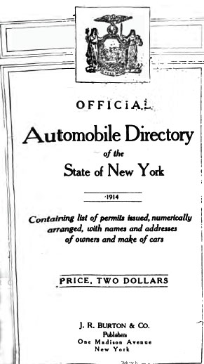 It has over 65,000 Automobiles Listed That Were Registered In New York State In 1914. Notice the publishers address...sound familiar?