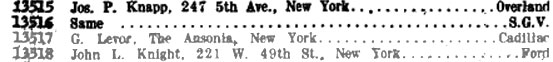 Getting the actual entire book ( it's 900 some pages) revealed a few more Knapp Cars. Just Like His Son, Old J. P. Had Several Automobiles Too