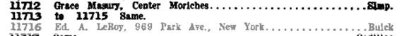 The book has her typoed her as Eugene , however there was only one E.A.T. Smith in the greater Manor of St. George area, and that was Eugenie . ( Moriches is her PO Address ) In the 1920's, Arthur Penney recalls she drove a Stutz Bearcat,that probably was a runabout too.