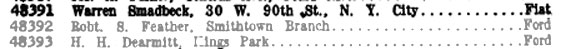 TWELVE YEARS BEFORE THAT, WARREN SMADBECK WAS COMING & GOING TO HIS HOME GUARDIAN CO. NEW YORK CITY OFFICE IN HIS FINE ITALIAN CAR ....