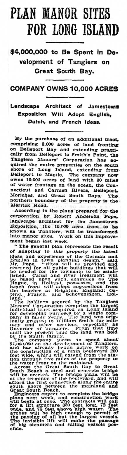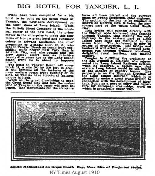 Well had Quimby prevailed in 1910, Stan's question would of never been raised, as part of Quinby's master plan was for a huge harbor. He needed a place to park all those yachts he hoped would come sailing up to all the estates he hoped to build. And he kmew how to get it done, as he had a U.S. Senator on his board of trustees. Senator William Hughes of New Jersey was given control of $100,000.00 of Tangiers Development Corp. bonds and Uncle Sam was petitioned to build "Da Canal" that would lead to "Da Harbor"