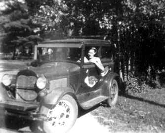 Goose", Larry's Dad in his 1929 Model A Ford Sedan in 1954.