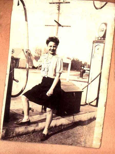 ) at the pumps of The Parr Garage in Mastic Beach circa 1942.