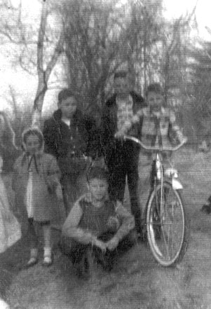 a new Columbia Bike for it. Helping him celebrate are Kathy Potts,