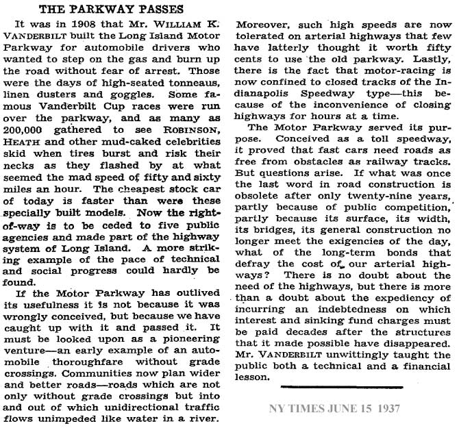 With the power of the state of New York and imminent domain behind him, Moses pretty much was able to build what he wanted, where he wanted. His free Northern and Southern State parkways took most of the traffic away from L I M P and Willie found himself with a white elephant and a mounting tax bill. He originally offered the LIMP to the state for free and Moses let it slide. Various municipalities in Queens, Nassau and Suffolk began to cherry pick what they wanted and it wound up getting sliced and diced.