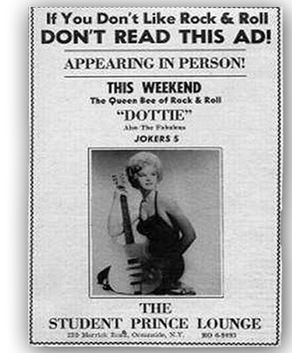 IT WAS 1960... 50 YEARS AGO .... YIKES ! .... As I have mentioned on the opening page of my Long Island Bar Bands History. I already had been playing guitar for four years, but I was still not even 13, when on many a Fri or Sat night, my guitar playing buddy and neighbor Doug Percoco and I would sit on the stoop of Smith's Fish Market, a tiny free standing bungalow at the rear of Schulte's Stable in the tiny town of Mastic Beach, LI and listen to the live bands in Schulte's. We also spent a lot of time at Schulte's rear window staring in at the bands, dreaming of getting to play in there someday (that was the big time for us then) when we were old enough and good enough and could afford real professional instruments like we saw in the hands of the band members on stage. I think the earliest band I recall was a group called The Sonics and for some reason everytime I hear Bruce Channel's big hit "Hey Baby" I think of the Sonics, perhaps because I heard them do it just like the record. One night I recall both of us were amazed when we saw a very pretty girl on stage dressed to thrill, with a guitar and several other guys backing her up. We soon found out her name was Dotty Rutledge and she was from Patchogue. We thought she must surely be 18 to be playing in there. Turns out she was far, far from it. But thanks to a very aggressive stage mother, Dotty always looked, dressed and acted the part. The "age law" was something we also discovered applied to us when we took the stage at Schulte's a year or so later with our own combo The Islanders. There was sort of an unwritten law back then, if you had an adult relative or supervisor over the drinking age, you could perform in taverns. If it wasn't an actual ABC law, it was at least a loophole tolerated by all it seems. That loophole seemed to had vanished shortly afterwards though and I recall having to use my older brothers Draft Card to continue working in bars right up until I turned 18 in May of '65. It always felt funny having the club owners call me Walter and several times I slipped up. I also was very fortunate to be on stage playing when the cops would make unannounced visits to check proof of age. Being 6' 2 " and up on a stage in a suit, I was never bothered. Schulte's changed bands fairly often and I recall a year or so later, seeing Dotty's 8 x 10 Solo Glamour Guitar Glossy in the window along side of another one of a band of 5 girls she was in called Goldie & The Gingerbreads. Doug and I thought Dotty had changed her name to Goldie because of her blonde hair and the fact that she usually was a band leader. Little did we know then that Goldie was actually the brunette singer Genya "Goldie" Zelkowitcz or that she was the one in the dark outfit in that photo Even when the real Goldie remerged in the late sixties as Genya Ravan and Ten Wheel Drive I still didn't make the connection. It took the power of the internet to do that some years back. I first connected with Genya some time ago, and asked if she knew whatever happened to Dotty Rutledge? I think the last time I saw Dotty was about 1963 when I worked for Irv Rosen who owned Patchogue Music Center. Irv had quite a business and it was also a meeting place for many working musicians for much of the eastern half of Long Island. She didn't know me at all then and I was just a kid who worked in the store. Even in the daytime Dotty who was almost always seen with her "manager" mother, looked to be much older and one of the reasons her mother was always with her was Dotty wasn't even old enough to drive. When I started up my Long Island bar band history web site this year, it was one of my main hopes that I would reconnect with many of the people who worked in the various bands back then and that some of them would have photos, stories, news clippings etc to contribute to make the website grow and be a place people who were in bands or knew people in the bands will want to return to. I must say some have come through like gangbusters and some have turned up to be dead ends. About a two weeks ago I got an e mail from a Michelle Coombe in California, who with her husband has her own band. Michelle saw my post about Dotty being a member of Goldie & The Gingerbreads and wrote saying Dotty has been a friend of hers for over 15 years. She got in touch with Dotty for me and well as you can see here The Rest Is Mystery Solved and History Revisited , thanks to Dotty who has saved a great deal of photos and things from the time she was active in the music biz from 1958 - 1980. That's in it for the long haul! We have been e mailing and trading war stories and photos for a week or so now and some of those results you are seeing here and below. Be sure to visit my All Girls Band page too for a lot more photos and music history on both Goldie & The Gingerbreads ( who made R&R history BTW) and Dotty Rutledge Patchogue's Pioneer Princess Of Rock & Roll and more. Stay Tuned Ken Spooner Nashville, July 16, 2010