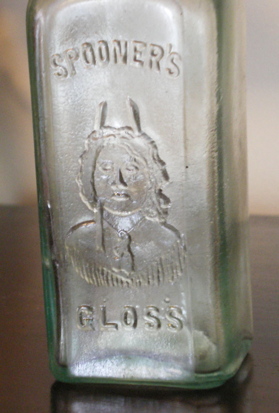 I believe this was furniture polish, what the significance of the Indian wearing two feathers & buckskins is , I do not know...... But I have a clue........ I do know that the census of 1930 states that my Great Grandfather Fred H. Spooner was a manufacturer of furniture polish.