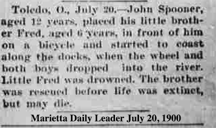 On July 18, 1900 just about a month after the 1900 census was taken, Frederick Byron Spooner died tragically. He was a month shy of his 5th Birthday. The Spooner home was located at 192 19th Street just a few blocks away from where he drowned in the Maumee River aka Miami of The Lake. Both are Chippewa Indian names and that could be the connection to the Indian embossed on the bottle of Spooner's Gloss ?? ....... The Legend Lives On From The Chippewa On Down To The Big Lake They Call Gitchee Gumee .... Gordon Lightfoot