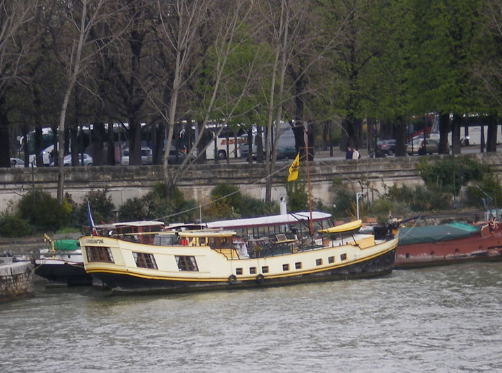 On our cab ride from the airport to the hotel, I spotted this boat as we crossed over the Seine.