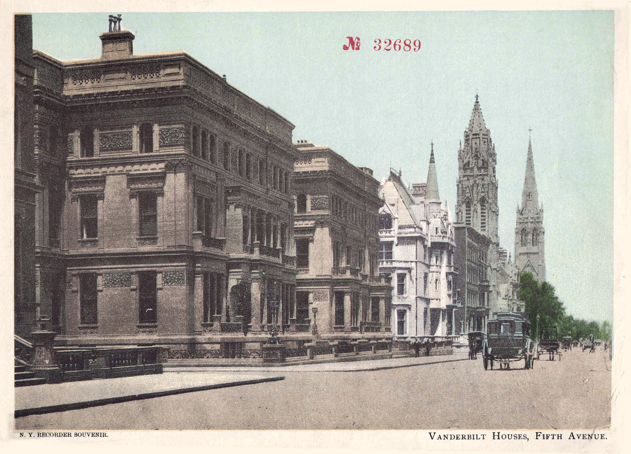 Those are the awesome homes of both William H. and William K. Vanderbilt In The Foreground. The Vanderbilt mansions were bona fide NY City tourist attractions for years, even though you could not go inside them. Somewhat ironically to me is the fact that J. P. Knapp's Collier's Office Building was built on the site of the Vanderbilt mansions in 1949. And last but not least J. P. himself left the Big Apple for good when they held his funeral service in St. Thomas (the closer of those two churches ) on Feb 2 ,1951