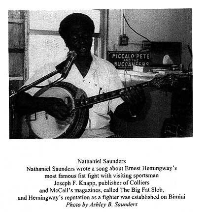 Being a songwriter myself, I had an intense interest in this story that appears in Ashley B. Saunder's book "The History Of Bimini" New World Press. What follows is an interview he conducted with Nathaniel Saunders on September 25, 1980.