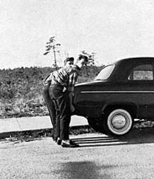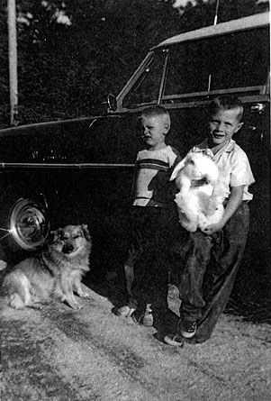 around 52 or 3 with their dog Skippy and their Dads '52 Ford.