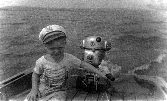 Himself. Larry Schulz about 1951 holding her steady in a boat