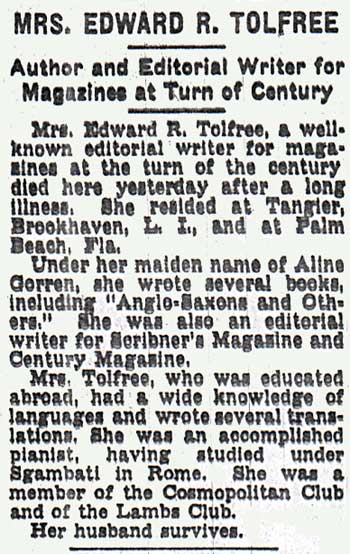 Tolfree. He was a chemist and worked with the DuPonts. Aline was