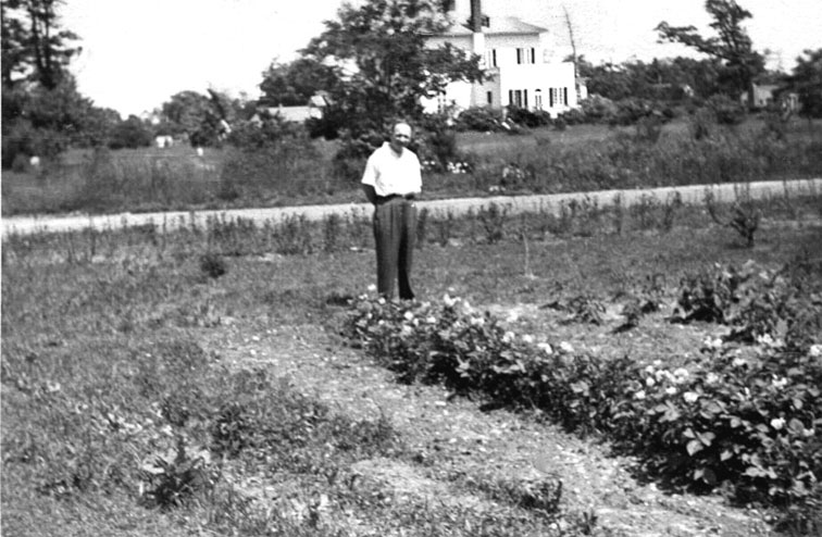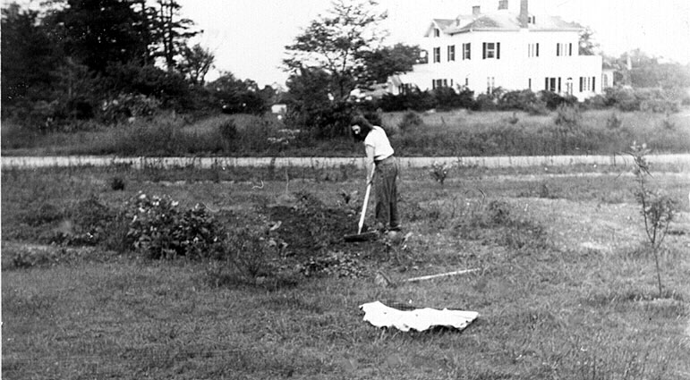 working in her garden in the 1940's. Behind her is Monroe Drive
